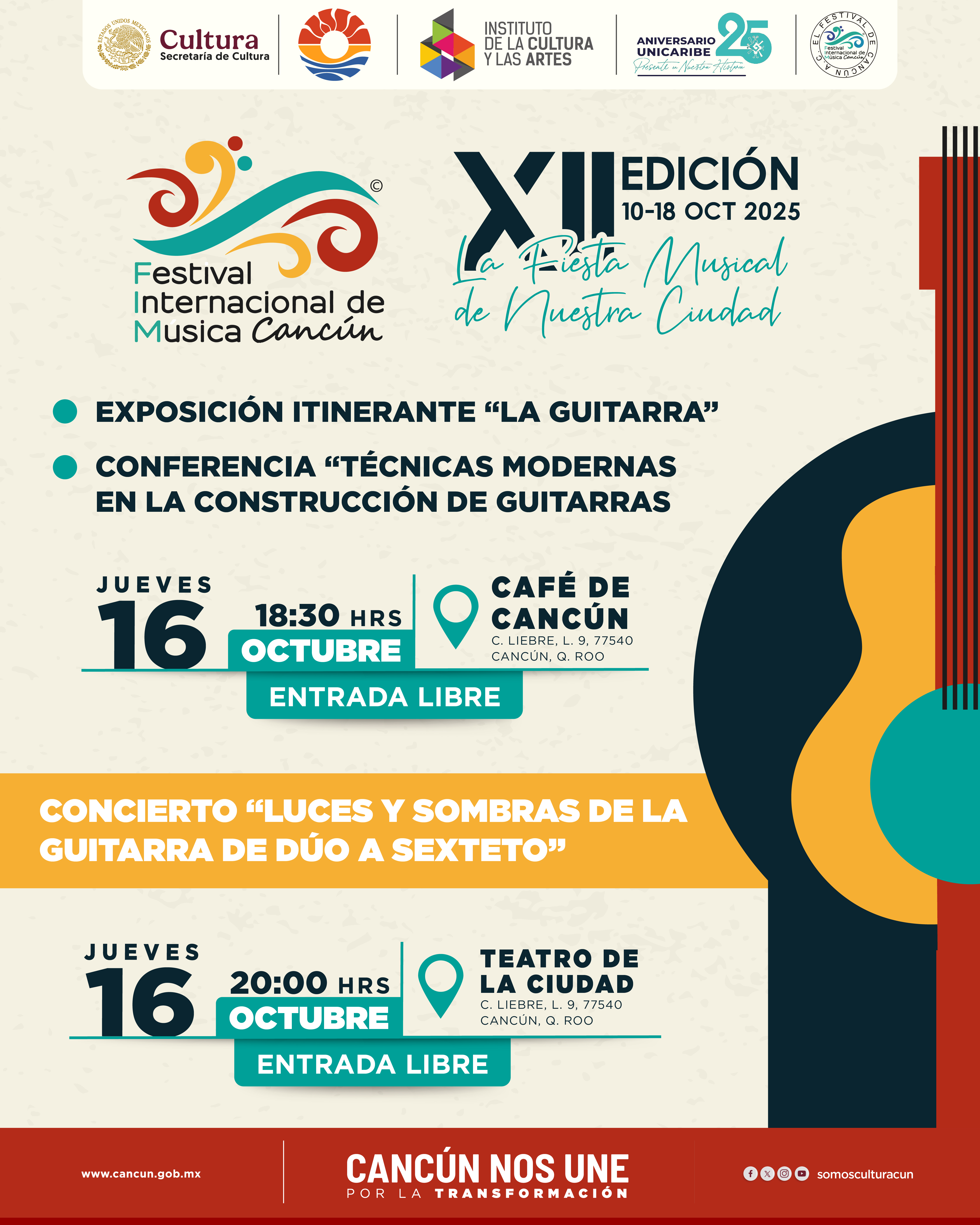 Conoce la cartelera cultural y la oferta de eventos de la ciudad dando clic en los íconos para acceder a la cartelera de cada espacio.